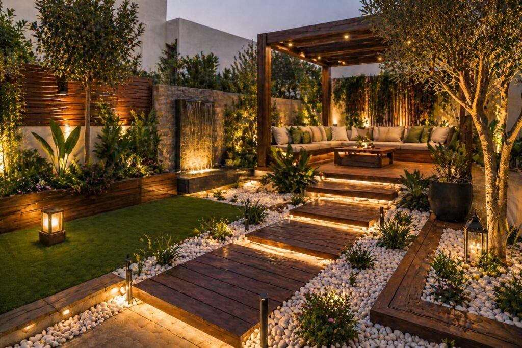 تنسيق حدائق الظهر فن دمج الخشب مع العناصر الطبيعية