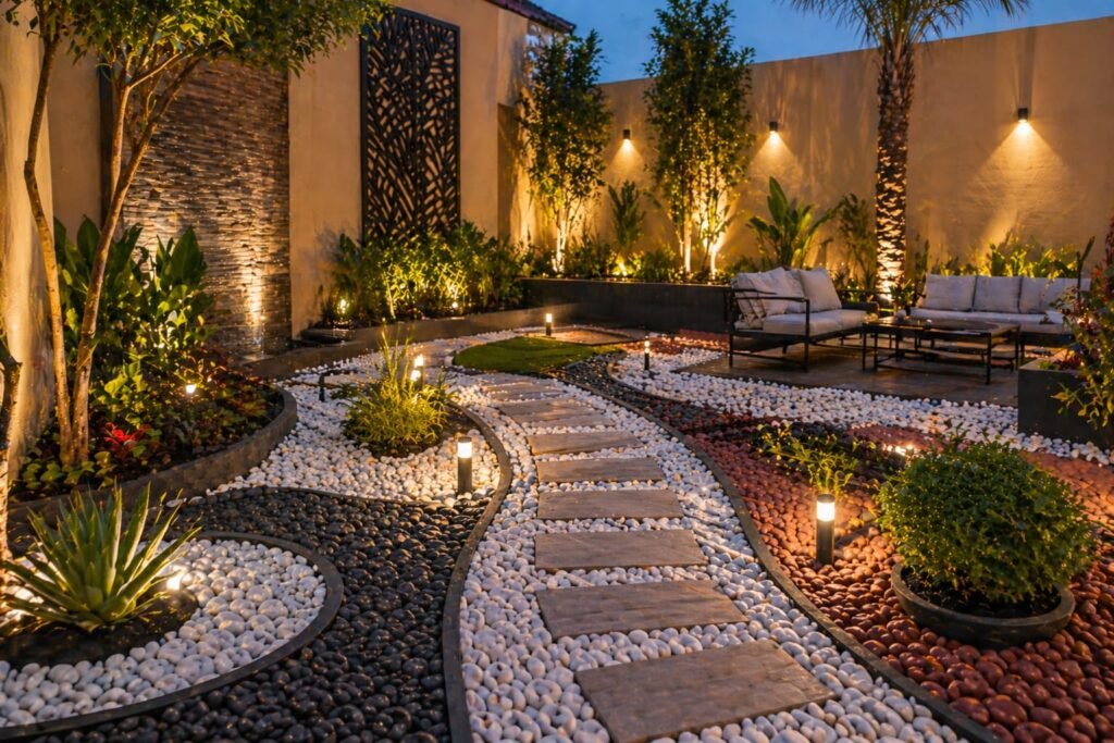 تنسيق حدائق ميناء عبدالله أحدث طرق تزيين الحدائق بالحصى الملون