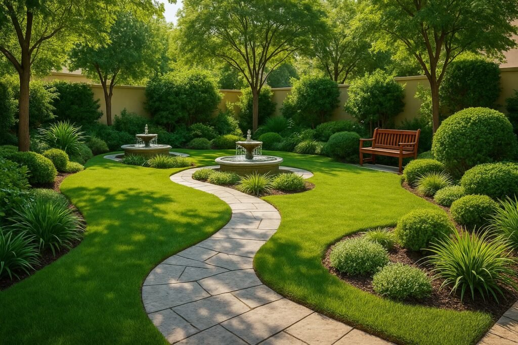 نُولي اهتمامًا خاصًا بتوزيع الأشجار والزهور بطريقة تُعطي الحديقة عمقًا بصريًا وجاذبية خاصة.